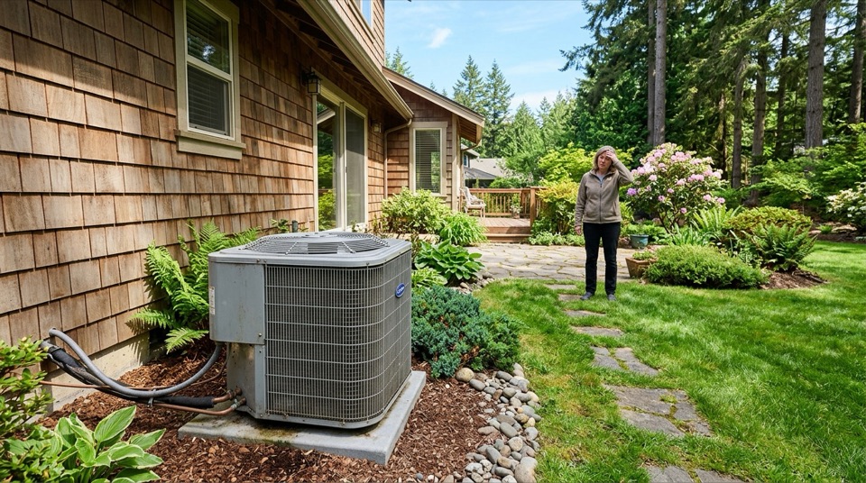 Millwood's climate accelerates this wear. Summer temperatures in the Spokane area regularly climb into the 90s and occasionally past 100°F, pushing AC systems to run long, hard cycles for weeks at a stretch. That sustained heat stress strains fasteners and metal components that are already 15–20 years old. Then, when temperatures drop sharply in fall and winter, the repeated expansion and contraction of those same components loosens what the summer heat weakened. By the time a unit starts banging or rattling, the climate has often been working against it for years.